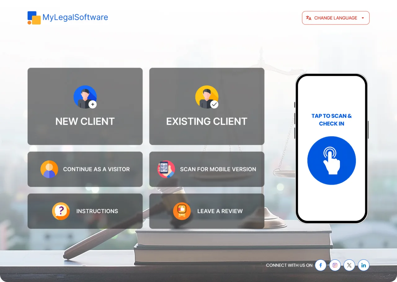 The kiosk is more than a check-in system—it’s your personalized legal assistant, built to keep you informed and supported throughout every legal journey. Whether you’re facing a new client filling out an intake form or an existing one checking case updates, setting appointment priorities, submitting documents, or making payments, our kiosk puts it all at your fingertips. Clients can instantly connect with caseworkers or the firm via call or email, confirm appointments, and keep cases on track. The kiosk seamlessly integrates with our case management software for real-time updates and complete transparency.
